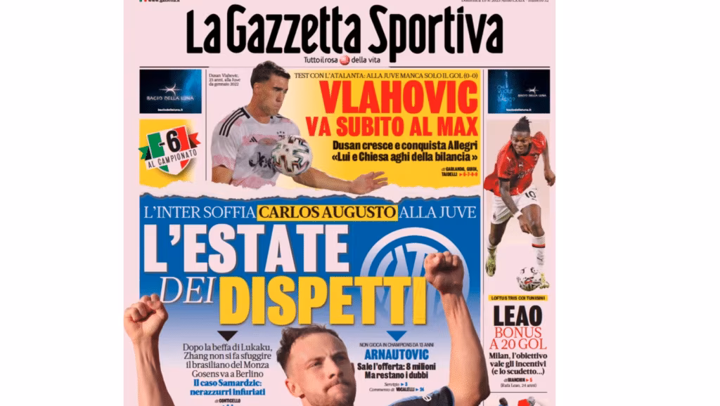 “Dusan cresce e conquista Allegri”. Questa l’apertura de La Gazzetta dello Sport, che dedica la parte alta della sua prima pagina a Vlahovic e alla partita amichevole di ieri sera. “Lui e Chiesa aghi della bilancia” continua la rosea, riprendendo le parole post partita di Massimiliano Allegri.