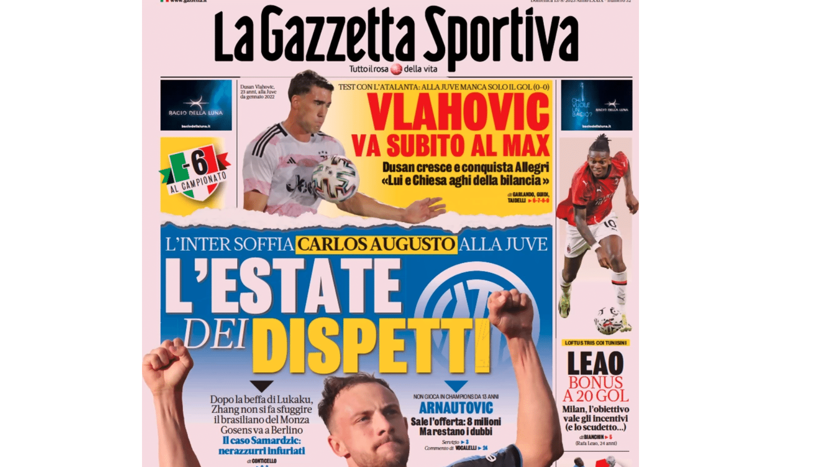 “Dusan cresce e conquista Allegri”. Questa l’apertura de La Gazzetta dello Sport, che dedica la parte alta della sua prima pagina a Vlahovic e alla partita amichevole di ieri sera. “Lui e Chiesa aghi della bilancia” continua la rosea, riprendendo le parole post partita di Massimiliano Allegri.
