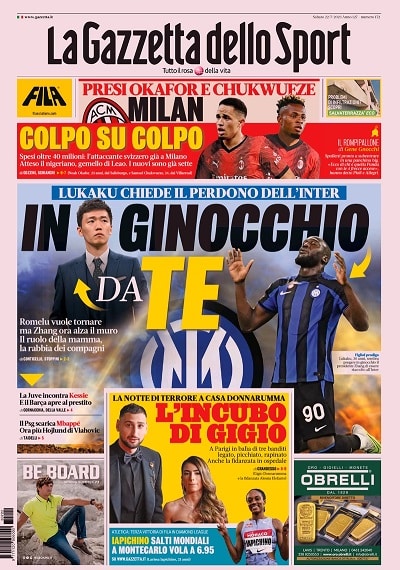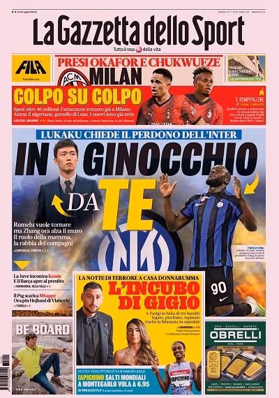 Nella sua prima pagina, Il Corriere dello Sport pone l’accento sui due grandi dubbi amletici della Juventus partente per la tournée americana. Infatti, oltre alla cessione degli esuberi, il club bianconero deve capire cosa succederà a Dusan Vlahovic e Federico Chiesa. Due giocatori importantissimi nella rosa di mister Massimiliano Allegri ma, come gli altri, non incedibili. Di fronte a un offerta che potenzialmente potrebbe giungere in qualsiasi istante, almeno uno dei due potrebbe lasciare la Vecchia Signora. Chi dei due potrebbe esserlo non sarebbe però una scelta della Juventus, bensì del mercato stesso. Molto probabilmente, il primo club che presenterà un offerta adeguata alle richieste bianconere potrà intavolare una trattativa anche con i giocatori.