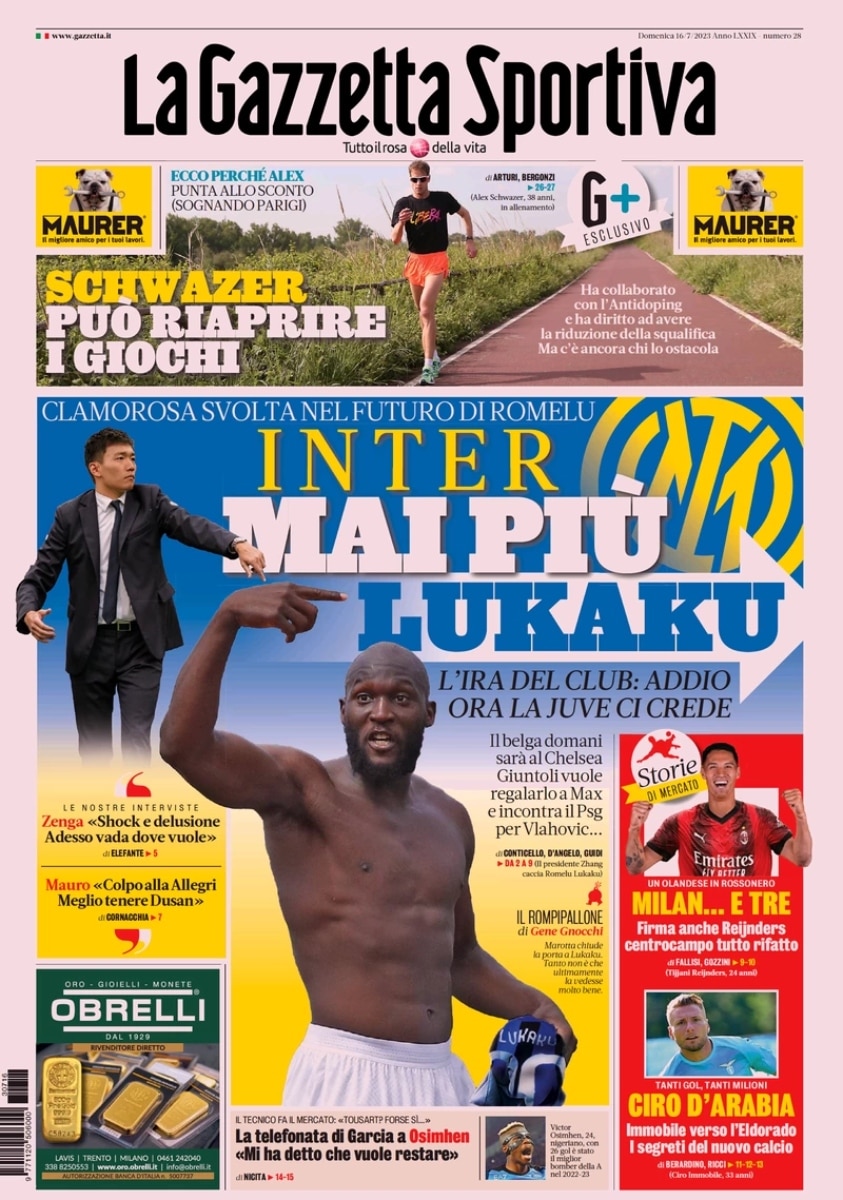 La notizia ha sorpreso tutti: il comportamento di Lukaku ha indispettito l’Inter che ha quindi deciso di lasciare la presa sul giocatore. La Gazzetta dello Sport titola: “Inter, mai più Lukaku. L’ira del club: addio. Ora la Juve ci crede”. L’attaccante belga è da tempo in contatto con i bianconeri e si candida come sostituto di Vlahovic nel caso in cui il serbo venga venduto.