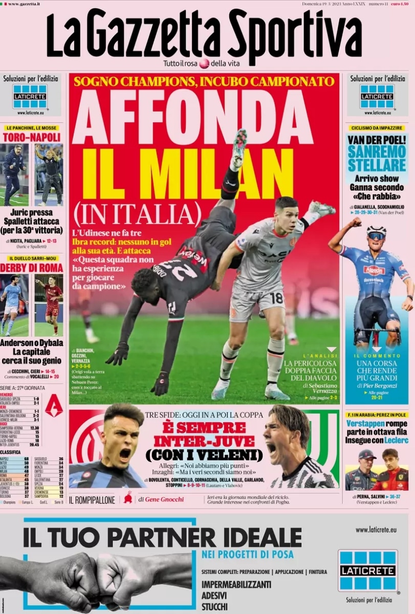 Condizionali che però lasciano il tempo che trovano, perchè la realtà dei fatti vede invece la Juve non a 51 punti ma a 38, mentre l’Inter è alle spalle del Napoli con 50 punti.