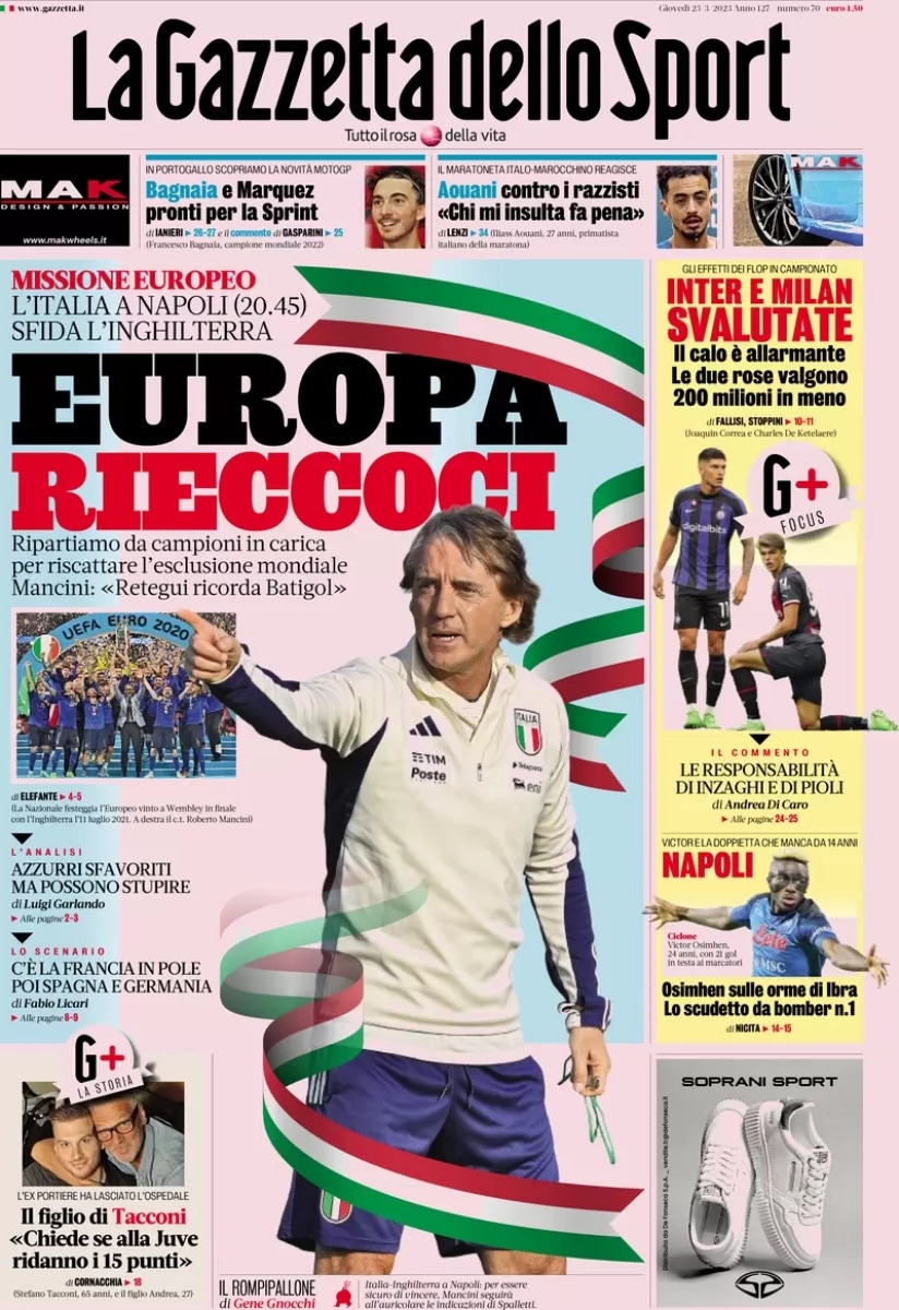 La nazionale di Mancini è chiamata a rialzarsi in piedi dopo l’esclusione dal Mondiale in Qatar, ma il ct azzurro dovrà fare i conti con diverse assenze pesanti in attacco.