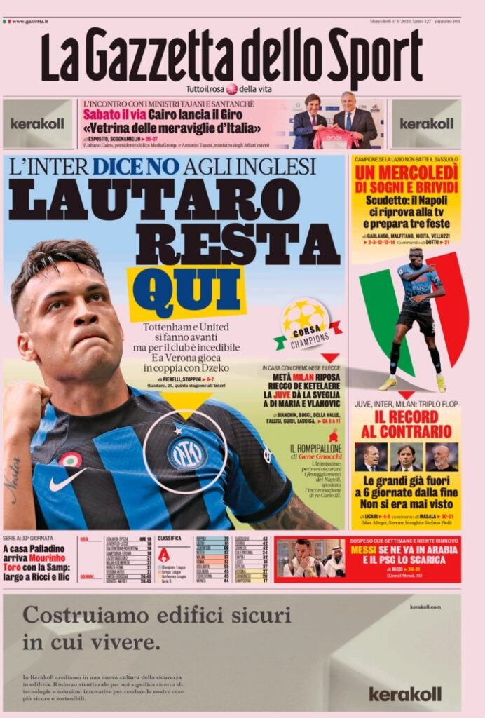 Se il Napoli è saldo in testa al campionato, dietro di lui ben sei squadre sono racchiuse in appena sei punti: Lazio (61), Juventus (60), Inter (57), Milan (57), Roma (57) e Atalanta (55).