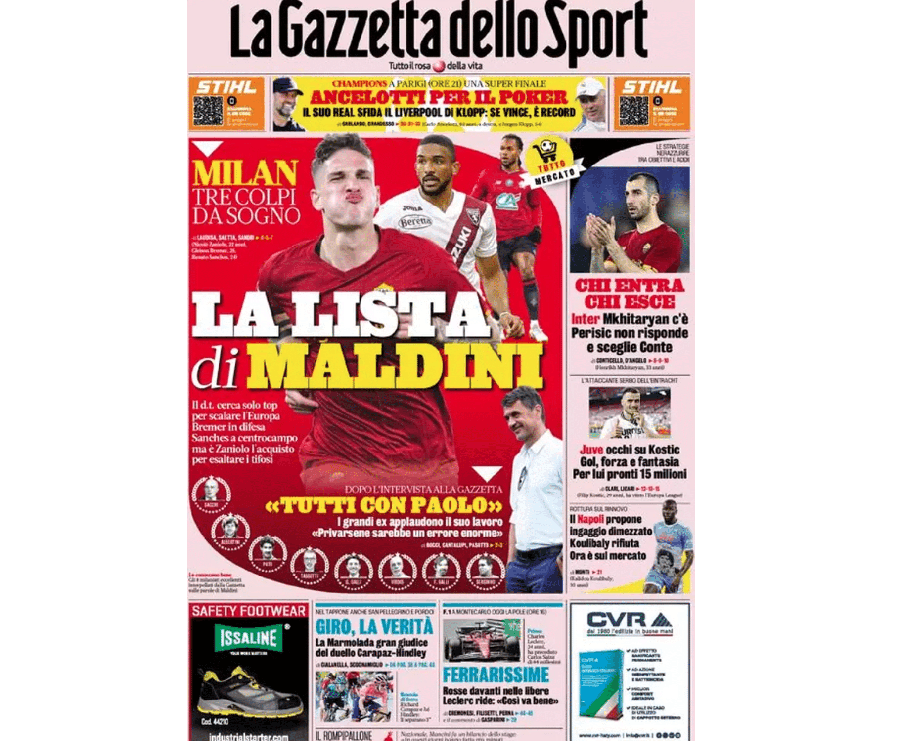 La prima pagina de La Gazzetta dello Sport