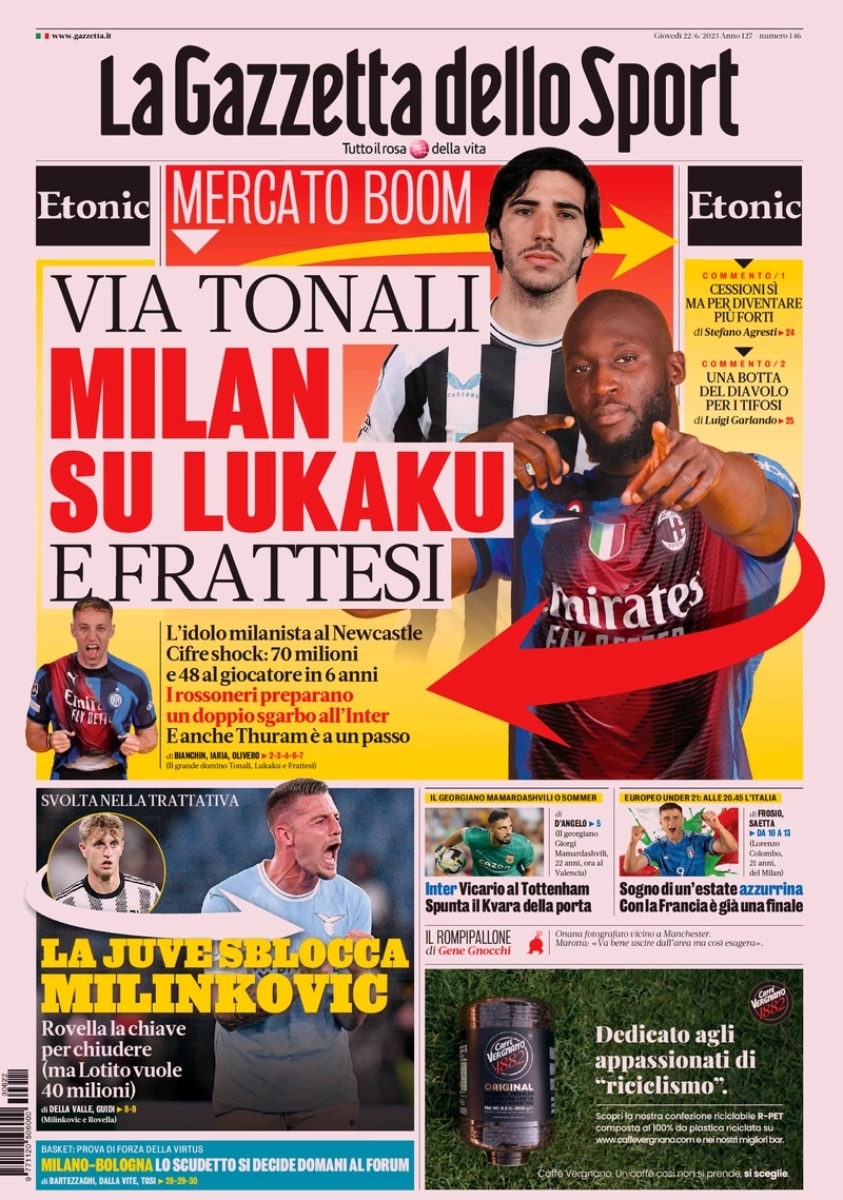 Secondo quanto riportato da La Gazzetta dello Sport, infatti, la Juve ha un piano per convincere la Lazio per Milinkovic-Savic. I bianconeri sono pronti a inserire nella trattativa Rovella, nome molto gradito a Maurizio Sarri.