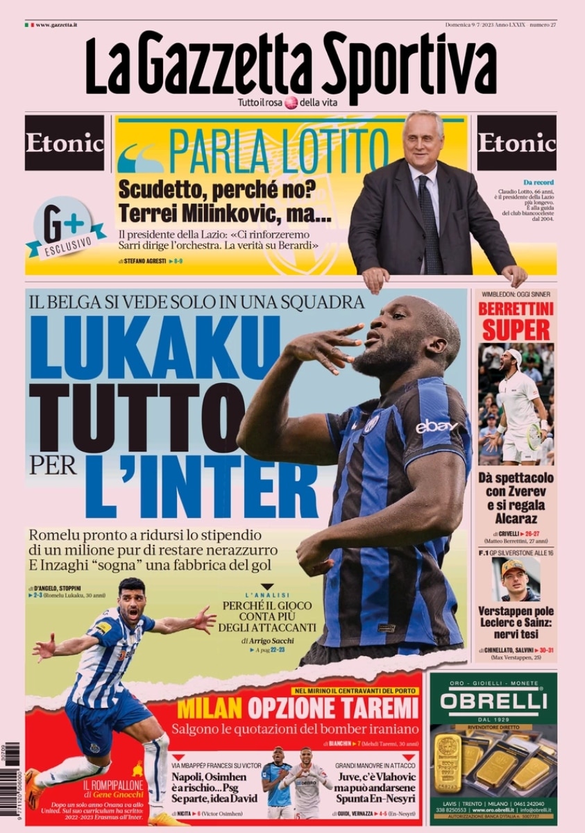 Sul Corriere dello Sport si torna invece a parlare di Romelu Lukaku: “Clamoroso: la Juve prova a strapparlo all’Inter. Vlahovic per Lukaku, Dusan vale Big Rom più 25 milioni. L’ostacolo resta sempre l’Al Hilal”.