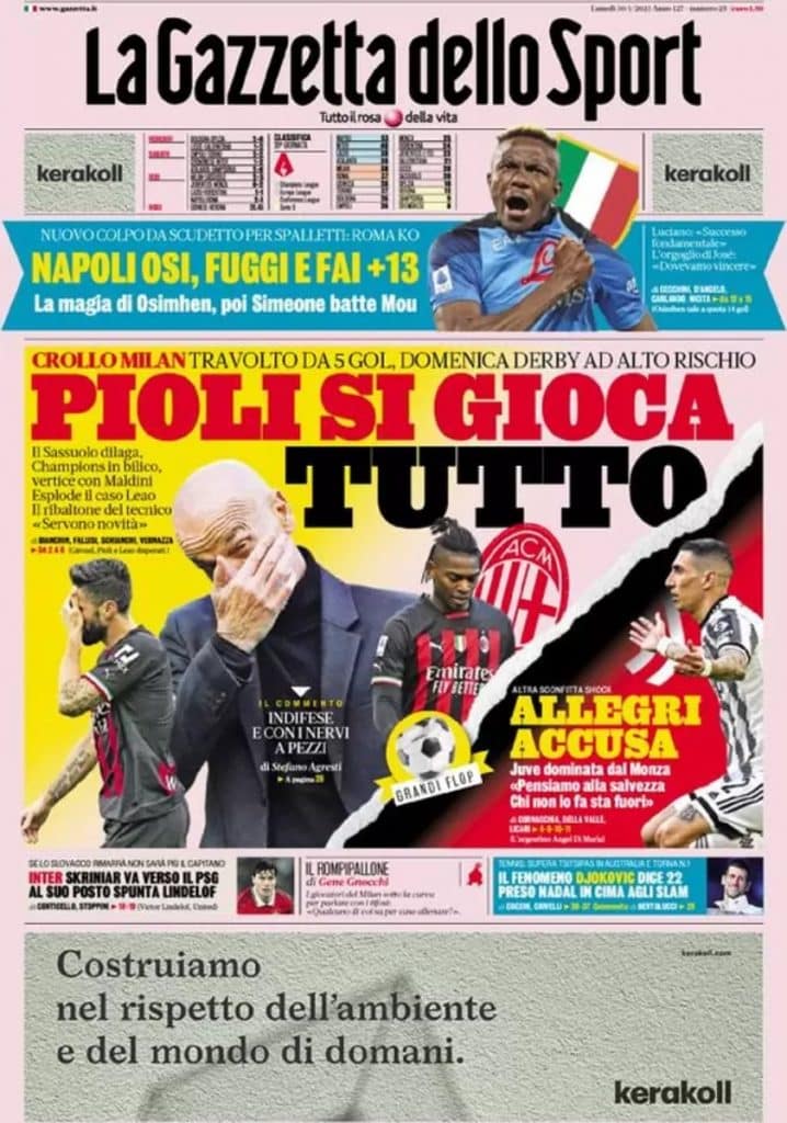 La zona retrocessione è ancora a 11 lunghezze di distanza, ma con il Napoli che continua a vincere (53 punti) è molto più plausibile pensare alla Serie B che allo scudetto.