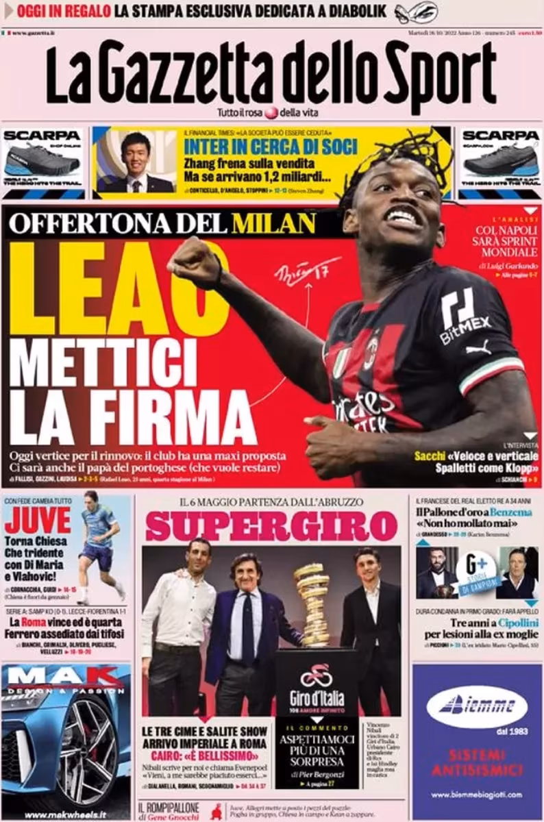 Rafael Leao del Milan, infatti, è arrivato 14esimo a parimerito con Fabinho del Liverpool e si conferma quindi il miglior giocatore della passata Serie A
