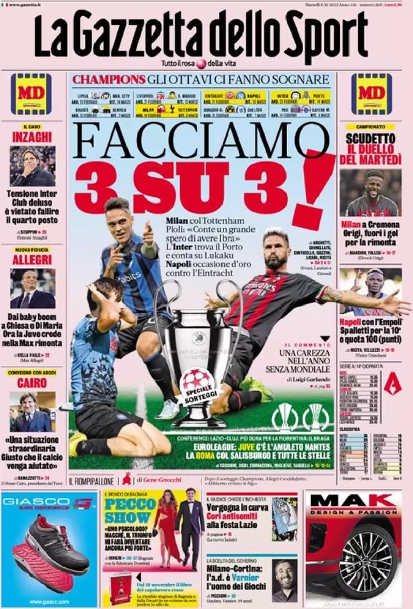 Nel frattempo è già il momento di tornare a pensare alla Serie A. Oggi alle 18:30 avrà inizio la 14esima giornata, penultima giornata prima della pausa per il Mondiale in Qatar.