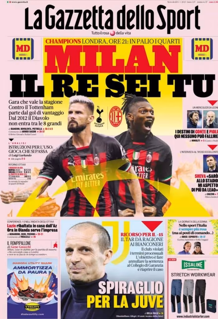 Domani, giovedì 9 marzo, andranno invece in scena tutte le altre sfide di Europa e Conference League, compresa quella della Juve.