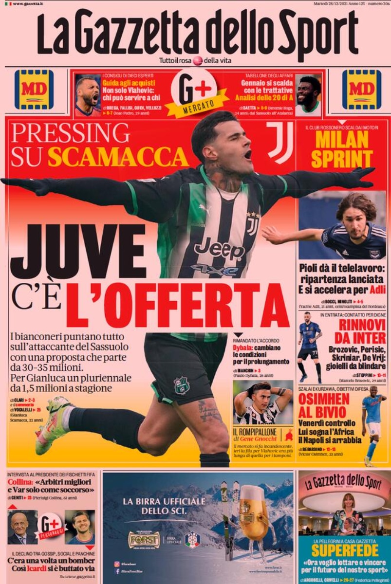 Secondo quanto riportato da La Gazzetta dello Sport, i bianconeri vorrebbero il bomber neroverde subito e sarebbero pronti ad offrire 35 milioni di euro. Forte, fisico e dotato di una buona tecnica, Scamacca è un attaccante moderno e giovane, che potrebbe diventare il pilastro dell’attacco bianconeri per gli anni a venire.