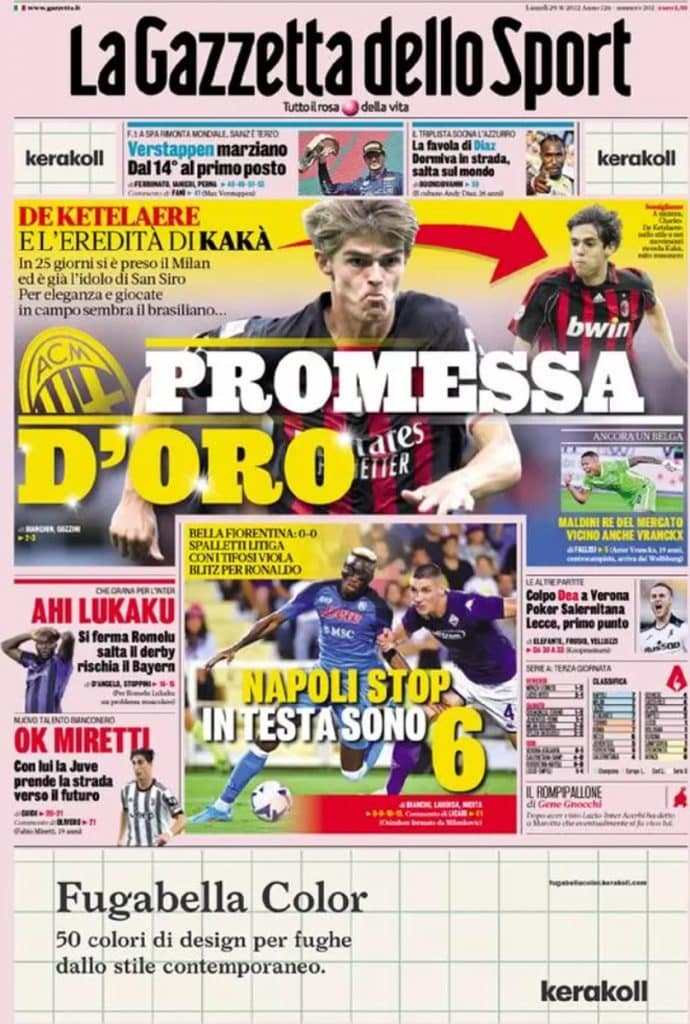 Napoli, Milan, Lazio, Atalanta, Torino e Roma sono a quota 7 punti, segue l’Inter a 6 e infine Juve e Fiorentina a 5. Nove squadre nel giro di due punti.