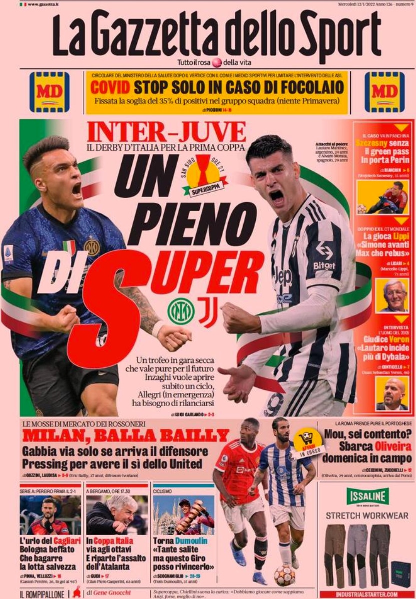 “La Supercoppa della verità”, intitola in prima pagina Il Corriere dello Sport nell’edizione odierna. Oggi Inter e Juventus si scontreranno in uno dei più grandi big match del calcio italiano, il Derby d’Italia. Entrambe le squadre questa sera scenderanno in campo per vincere.