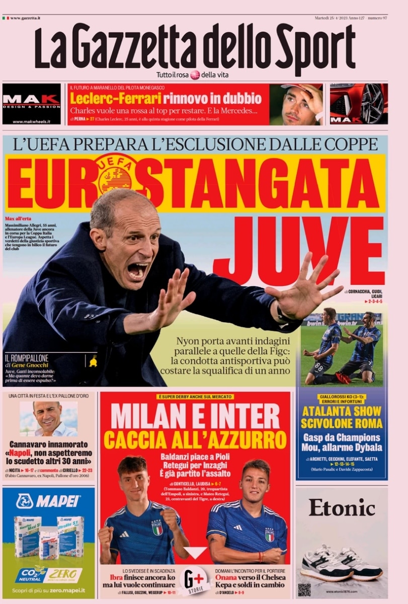 Secondo quanto riportato da La Gazzetta dello Sport, la UEFA starebbe valutando l’esclusione dalle coppe europee della Juve.