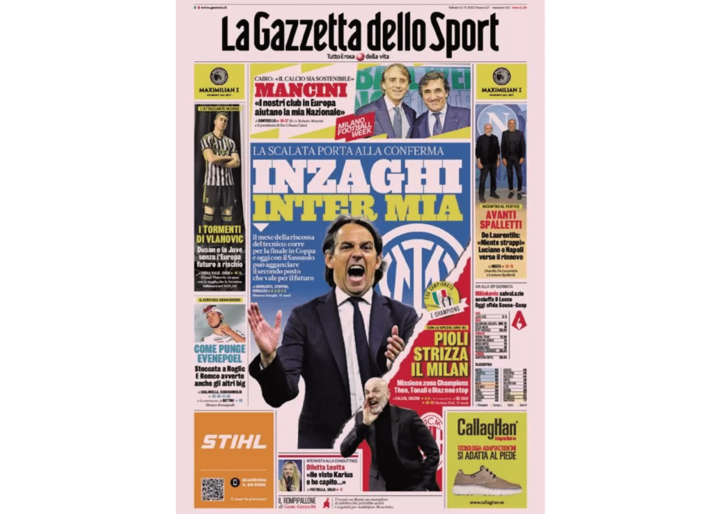 La prima pagina de La Gazzetta dello Sport