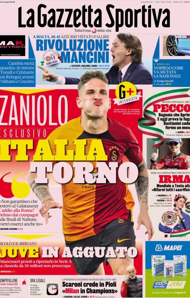 E se… La Juve tornasse a puntare su Zaniolo? Questo è quanto riportato questa mattina da La Gazzetta dello Sport, che dopo aver intervistato l’attaccante italiano in prestito al Galatasaray ha riaperto la pista bianconera.