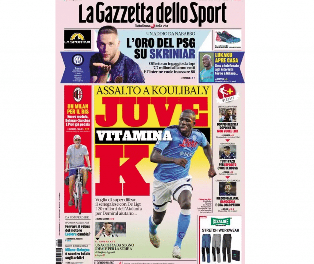 La prima pagina de La Gazzetta dello Sport