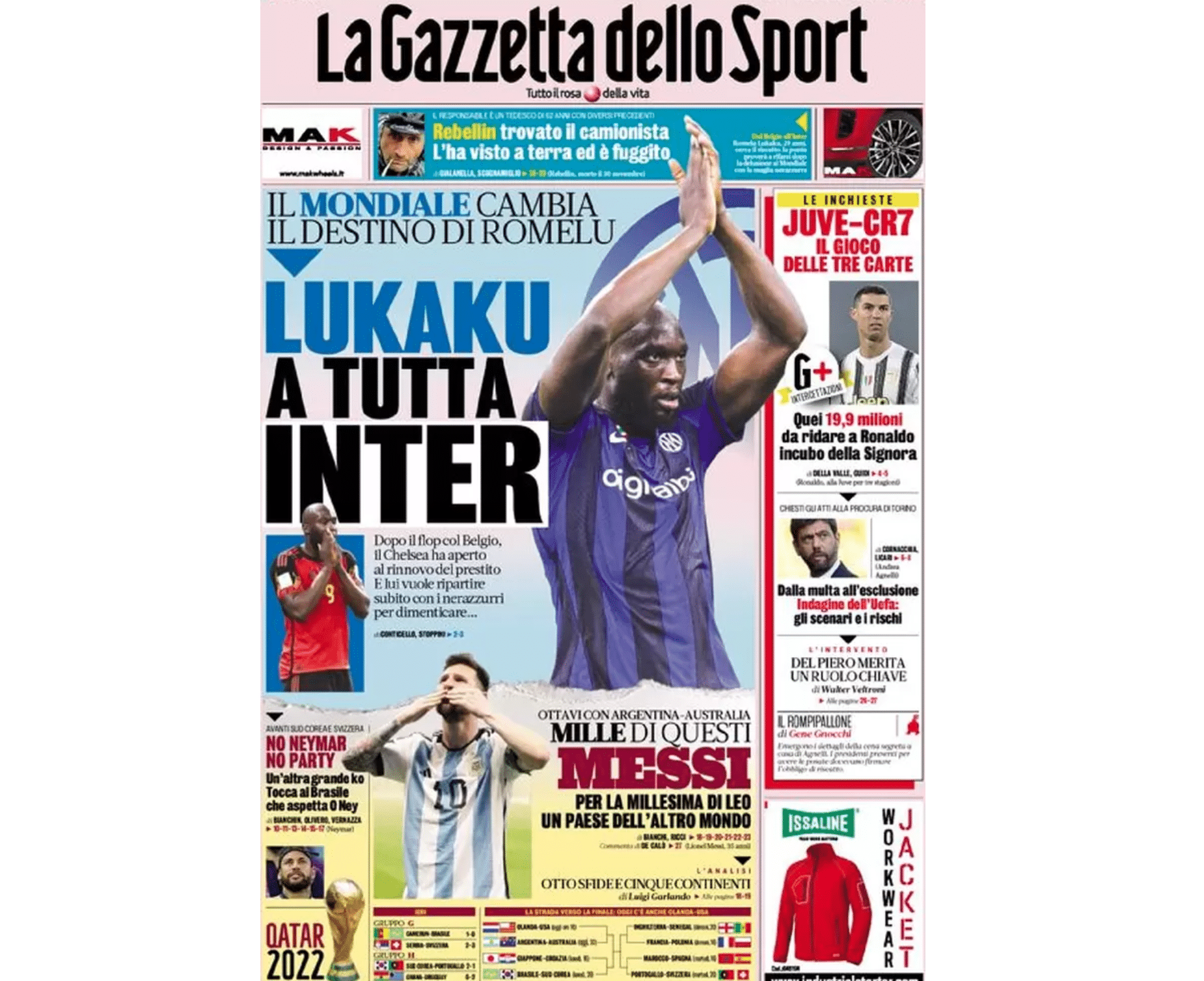La prima pagina de La Gazzetta dello Sport