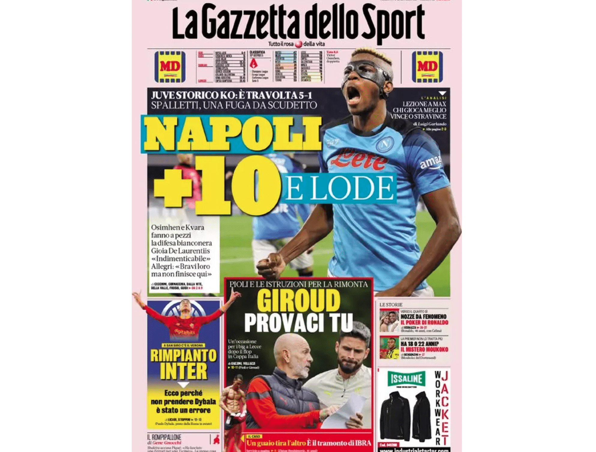 La prima pagina de La Gazzetta dello Sport