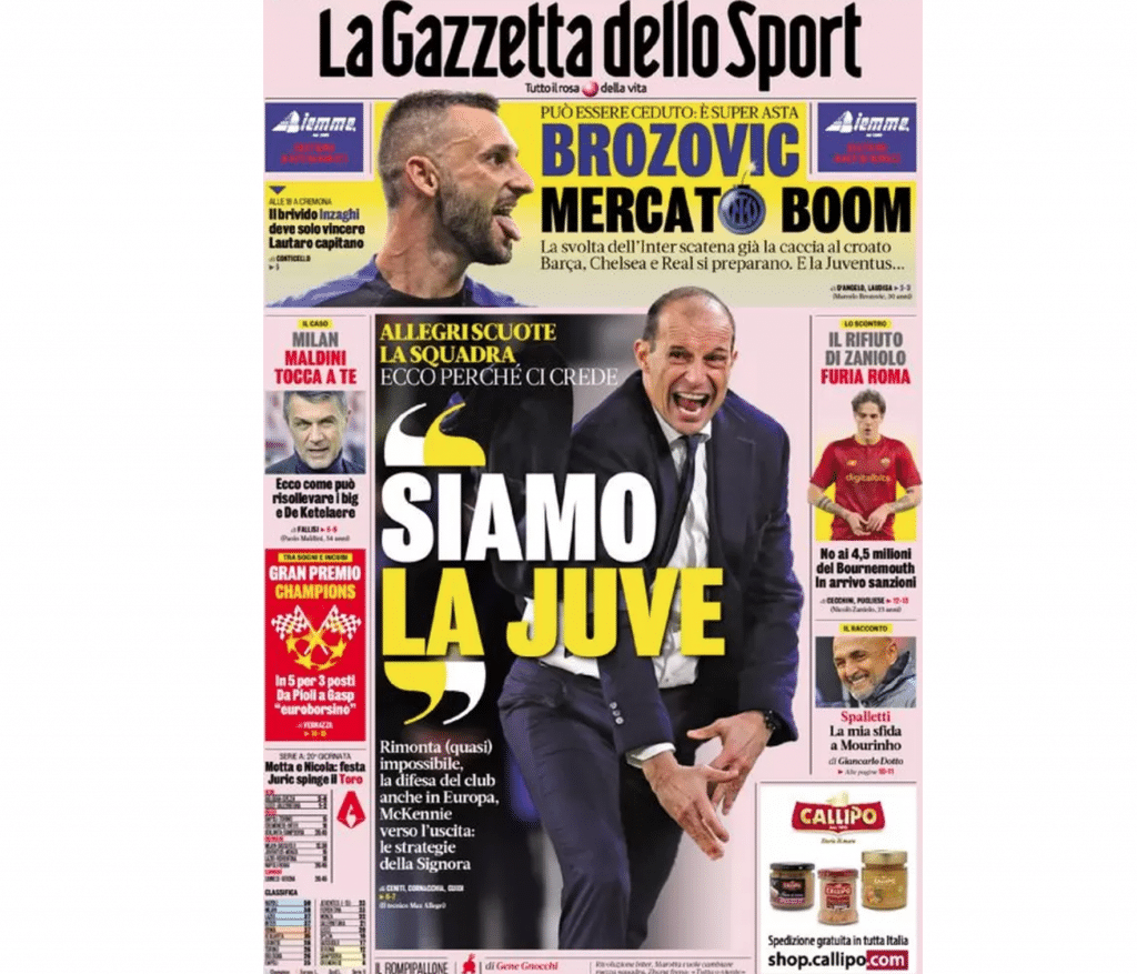 La prima pagina de La Gazzetta dello Sport
