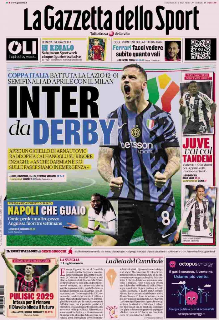 La svolta offensiva della Juve non passa in sordina neppure al quotidiano sportivo torinese. Inoltre, per la Coppa Italia, l’Allianz Stadium sarà gremito non di meno dei match ufficiali delle altre competizioni. In caso di superamento del turno, Thiago Motta incontrerà il Bologna, suo recente passato, al turno successivo.
