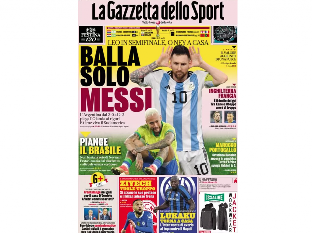 La prima pagina de La Gazzetta dello Sport