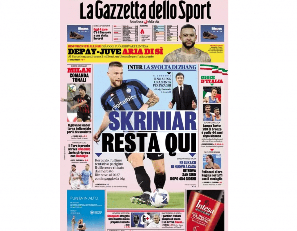 La prima pagina de La Gazzetta dello Sport
