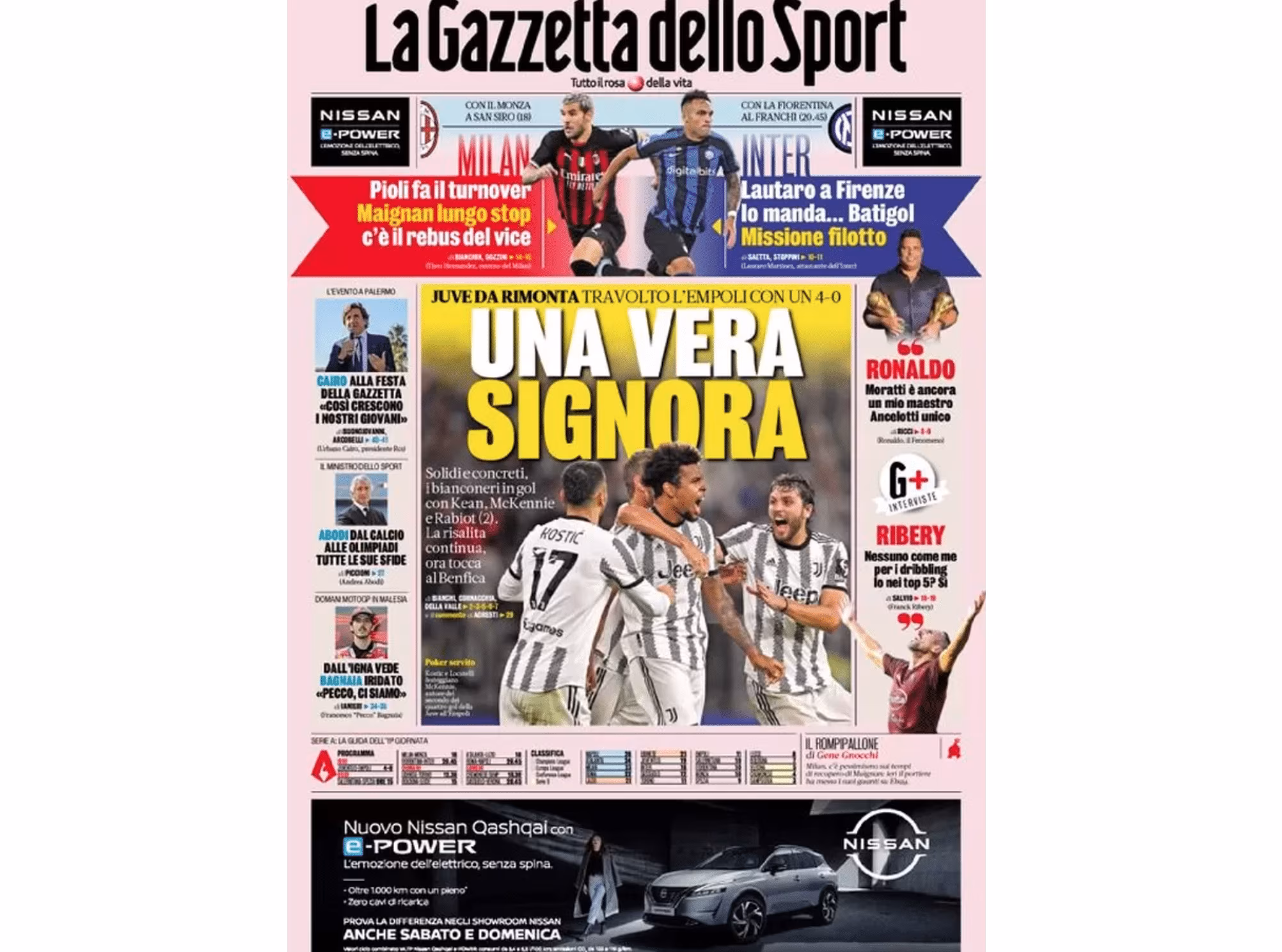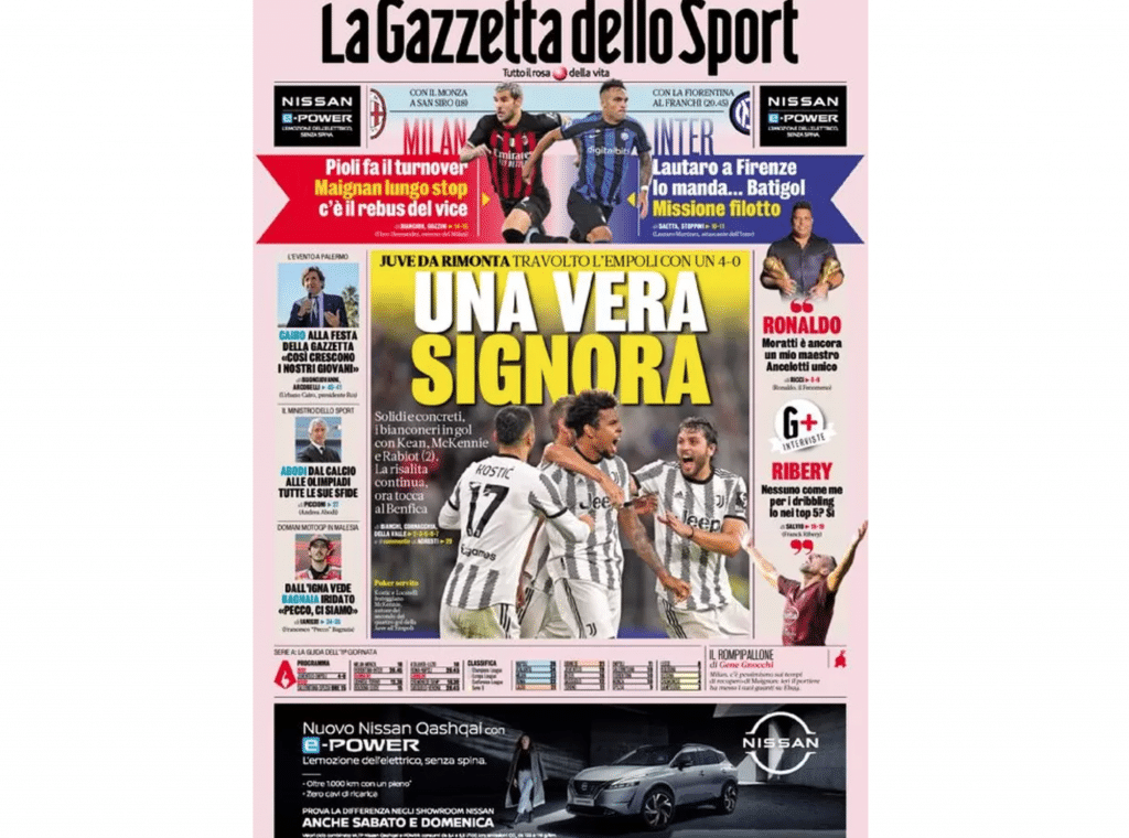 La prima pagina de La Gazzetta dello Sport