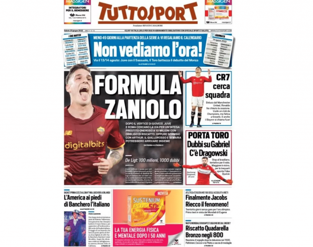 La prima pagina di Tuttosport