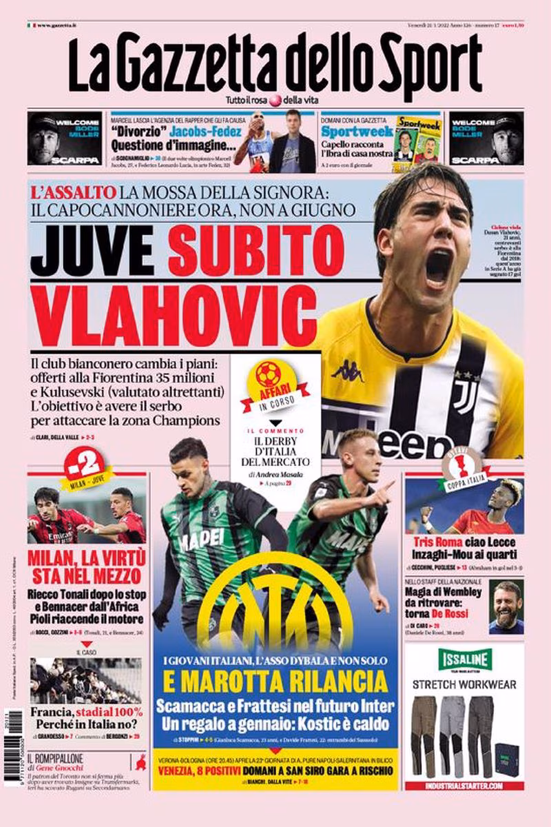 Secondo quanto riportato da La Gazzetta dello Sport, la Juventus nelle ultime ore starebbe provando un ultimo assalto per prendere Dusan Vlahovic dalla Fiorentina già in questo mercato di gennaio. L’offerta sarebbe di 35 milioni di euro (pagabili in più anni) più il cartellino di Dejan Kulusevski, esterno che non rientrerebbe nei piani di Massimiliano Allegri e che sarebbe sacrificabile per prendere un campione del calibro del serbo. Nei prossimi giorni sarebbe attesa una risposta da parte del club viola che vorrebbe sempre evitare la beffa di perdere il giocatore a parametro zero l’anno prossimo.