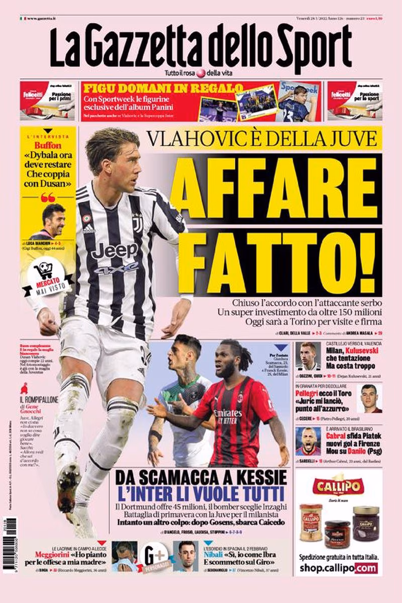Dopo l’incontro avvenuto nella giornata di ieri con il procuratore del giocatore sarebbe tutto fatto per il passaggio di Dusan Vlahovic dalla Fiorentina alla Juventus per un totale di 75 milioni tra parte fissa e bonus. Nella mattinata di oggi il giocatore svolgerà le visite mediche di rito al J Medical e verranno posate le firme sui rispettivi contratti. Il serbo ha scelto la maglia numero 28 in attesa (quella che aveva nelle giovanili della Fiorentina) in attesa si liberi la numero 9 di Alvaro Morata (che probabilmente resterà in bianconero fino a giugno visto che manca l’accordo tra Barcellona e Atletico Madrid. Gli agenti dell’attaccante percepiranno invece una cifra vicina ai 12 milioni di euro di commissioni. Una curiosità: l’entourage di Vlahovic ha regalato un cucciolo di cane da tenere alla Continassa come gesto beneaugurante per la prossima avventura dell’attaccante bianconero.