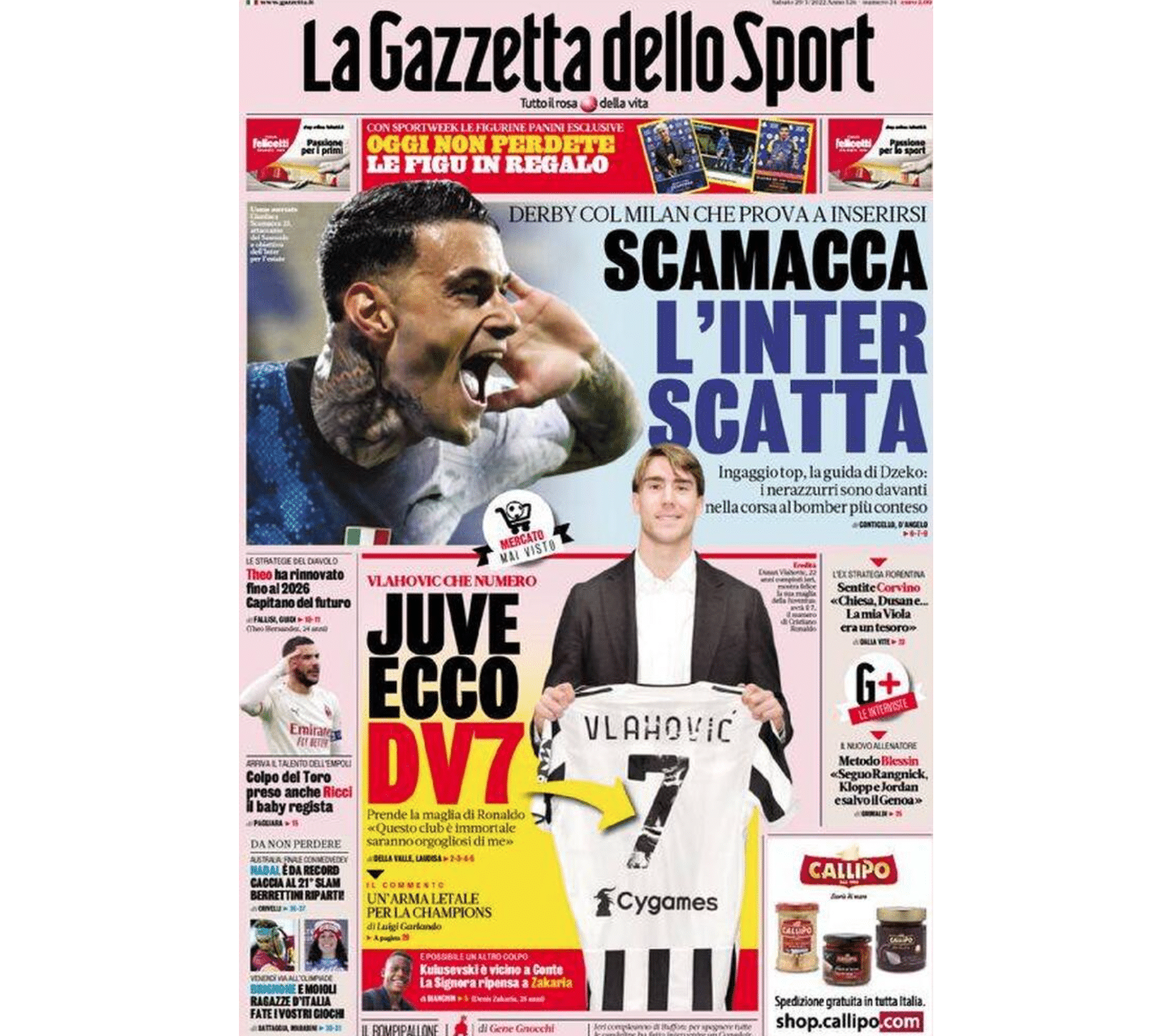 La prima pagina de La Gazzetta dello Sport.