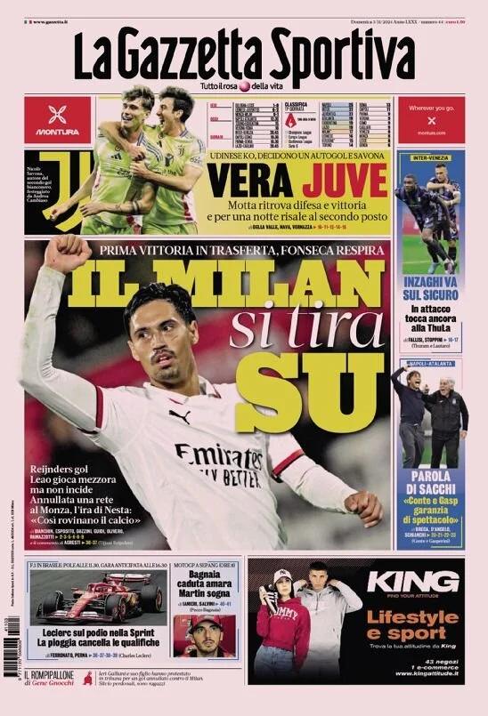 Il quotidiano sottolinea la risposta della squadra di Thiago Motta al momento complesso vissuto dopo i recenti passi falsi tra campionato e Champions League. Buona la prova di Thuram che scaturisce l’autogol e la prova difensiva che conduce all’ottavo cleen sheet in campionato.