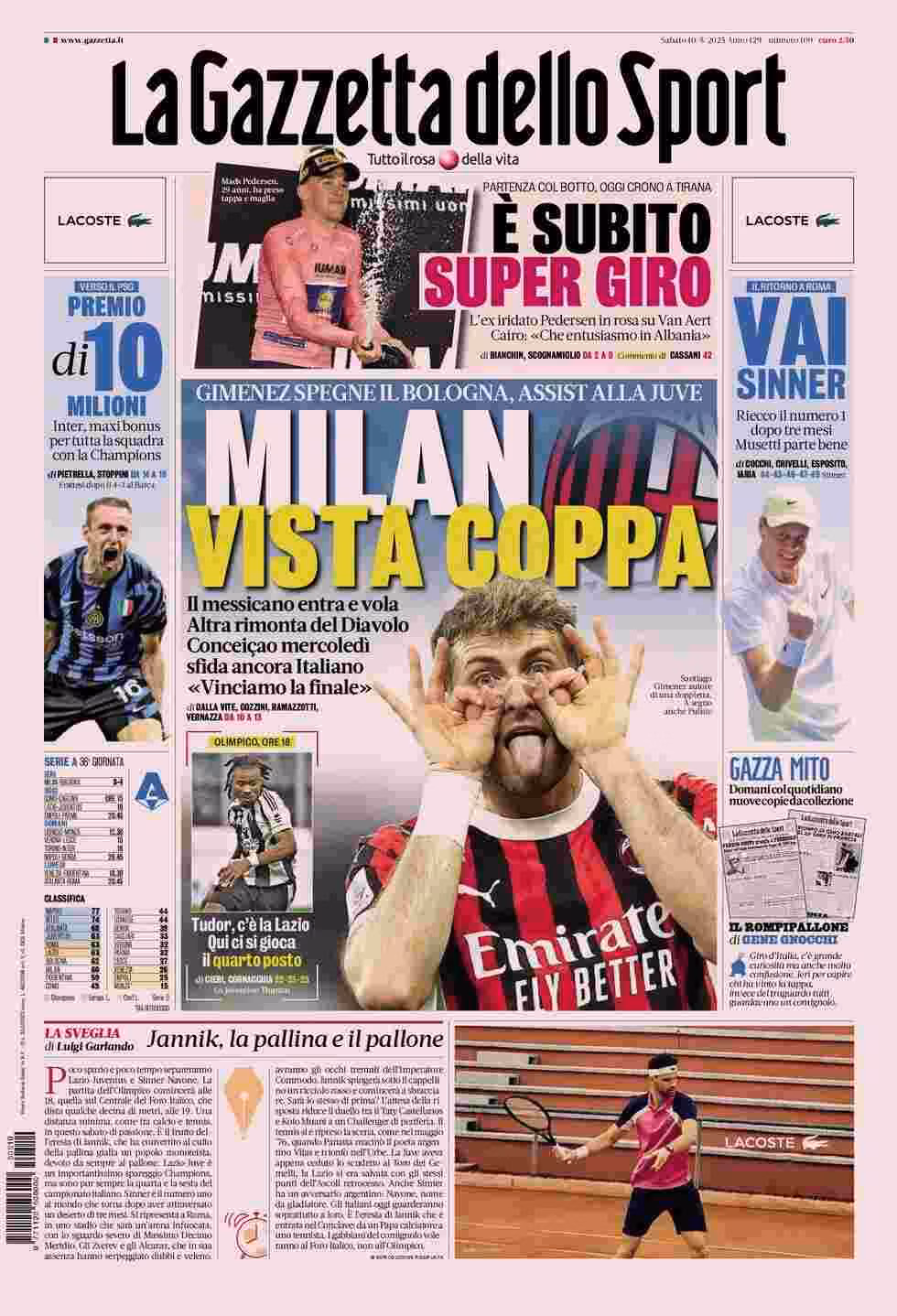 In linea con i temi di questi giorni, il quotidiano sportivo di Torino intitola il match della Juventus con un suggestivo Fumata Bianconera. In effetti, l’esito finale dei 90′ minuti contro la Lazio potrebbe risultare determinante per le sorti del futuro a breve e medio termine de La Vecchia Signora. Per l’occasione, come annunciato in conferenza stampa, Igor Tudor recupera Dusan Vlahovic, ma anche in extremis Federico Gatti. Intanto, oltre che per il reparto offensivo, la Juve penserebbe anche alla regia, dal quale emergerebbero i nomi di Cardoso e Jashari. Leggi anche le ultime news di calciomercato sulla Juventus <<<