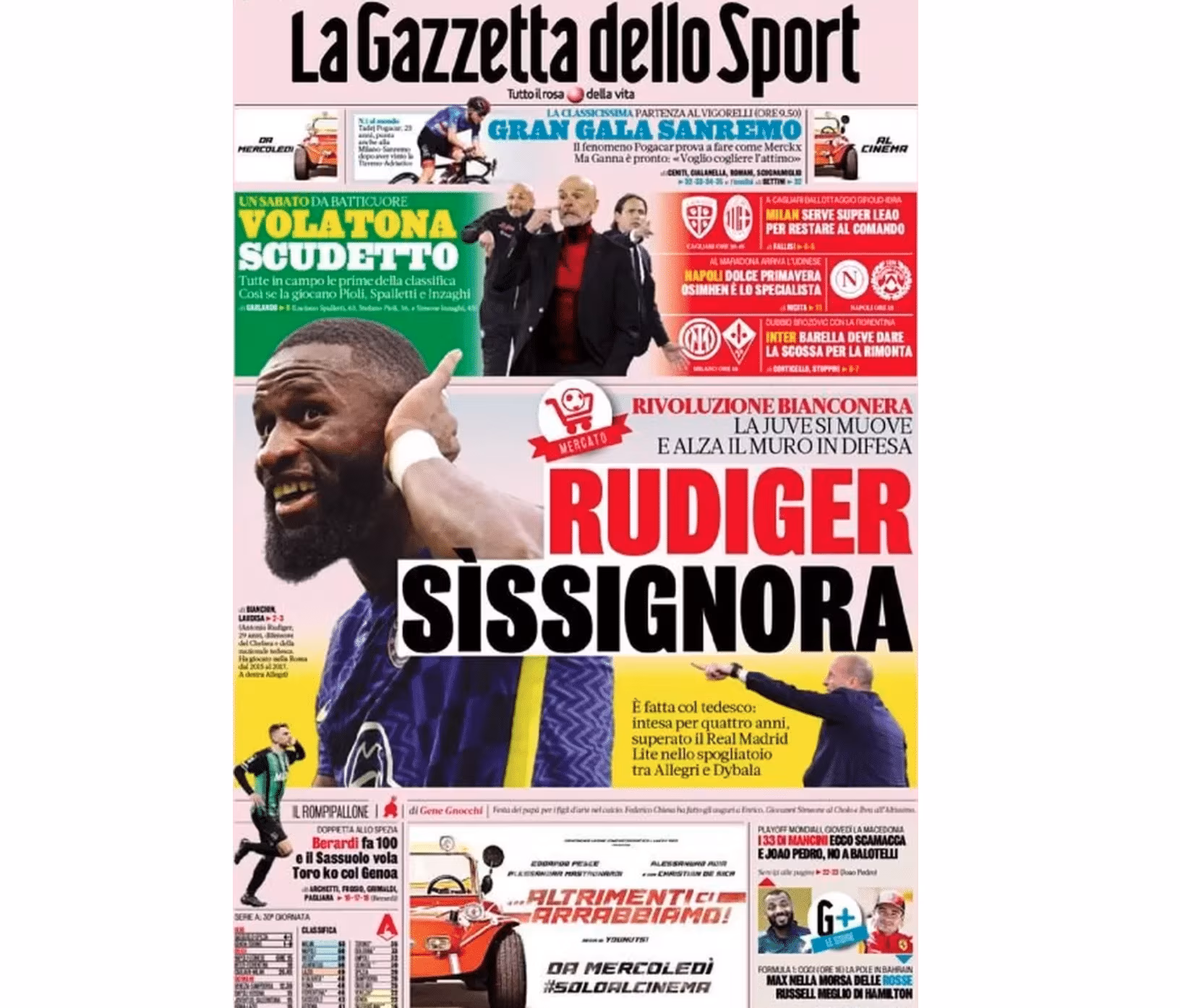 La prima pagina de La Gazzetta dello Sport.