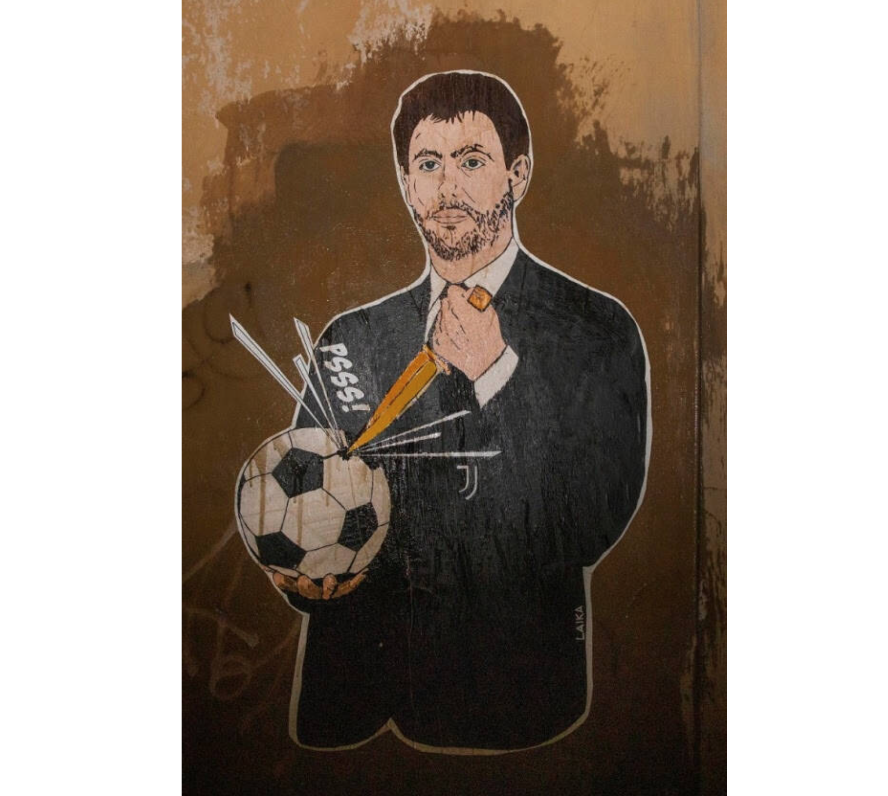 Continua a far parlare la Superlega, che a 48 ore dalla sua creazione sembra già un lontano ricordo. Andrea Agnelli infatti si è arreso questa mattina alla dipartita delle inglesi, mentre il presidente del Real Madrid e della neonata Superlega ancora non si è espresso. Intanto nella serata di ieri è comparso in via Giulio Caccini, a Roma, dietro della sede della FIGC, un poster realizzato dalla Street Artist Laika MCMLIV raffigurante il presidente della Juventus Andrea Agnelli che con un coltello buca un pallone. Chiaro il riferimento alla nuova competizione, che comunque sembra non vedrà mai la luce.