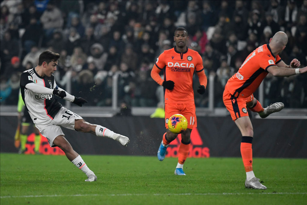 TURIN, ITALY - JANUARY 15: Paulo Dybala of Juventus FC kicks the ball during the Coppa Italia match between Juventus and Udinese Calcio at Allianz Stadium on January 15, 2020 in Turin, Italy. (Photo by Stefano Guidi/Getty Images)