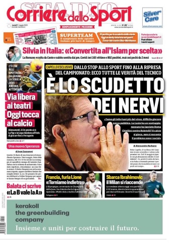 TORINO- Il Corriere dello Sport in edicola oggi apre con un’intervista esclusiva a Fabio Capello. L’ex tecnico di Juve, Milan e Roma ha parlato a lungo dello stop del mondo dello sport a causa dell’emergenza Coronavirus, oltre che, inevitabilmente, della ripresa del campionato. Parlando proprio di ripresa, sembra andare verso il si la decisione di riprendere gli allenamenti, anche se non vi sono ancora certezze riguardo la ripresa del campionato: