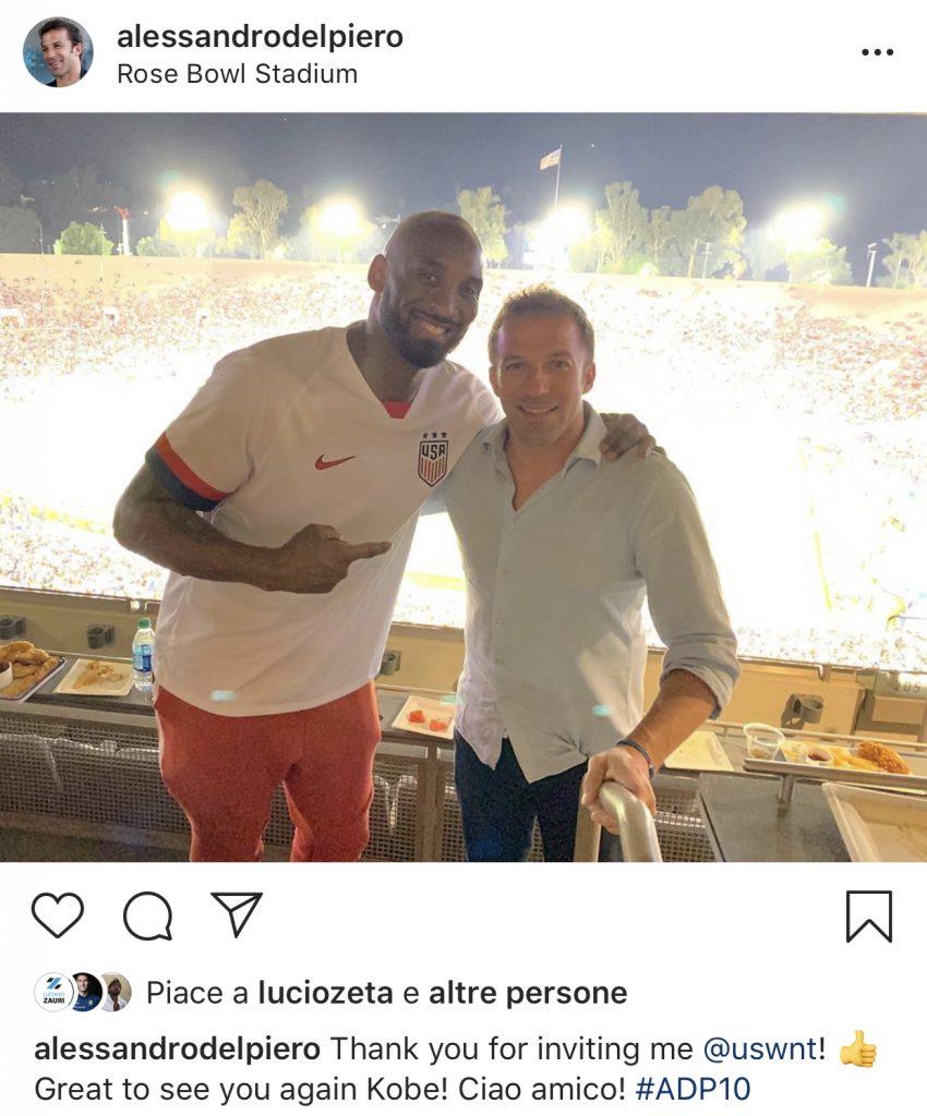 Alessandro Del Piero ha postato sul proprio profilo Instagram una foto scattata insieme alla leggenda del basket NBA Kobe Bryant al Rose Bowl Stadium di Los Angeles.
