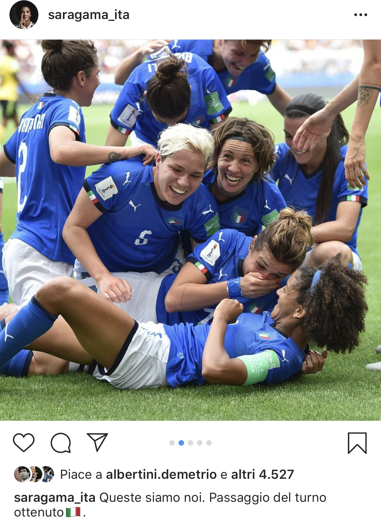 Sara Gama, capitano della nazionale azzurra che da poche ore ha sconfitto con un rotondo 5 a 0 la Giamaica garantendosi la matematica certezza del passaggio agli ottavi di finale.