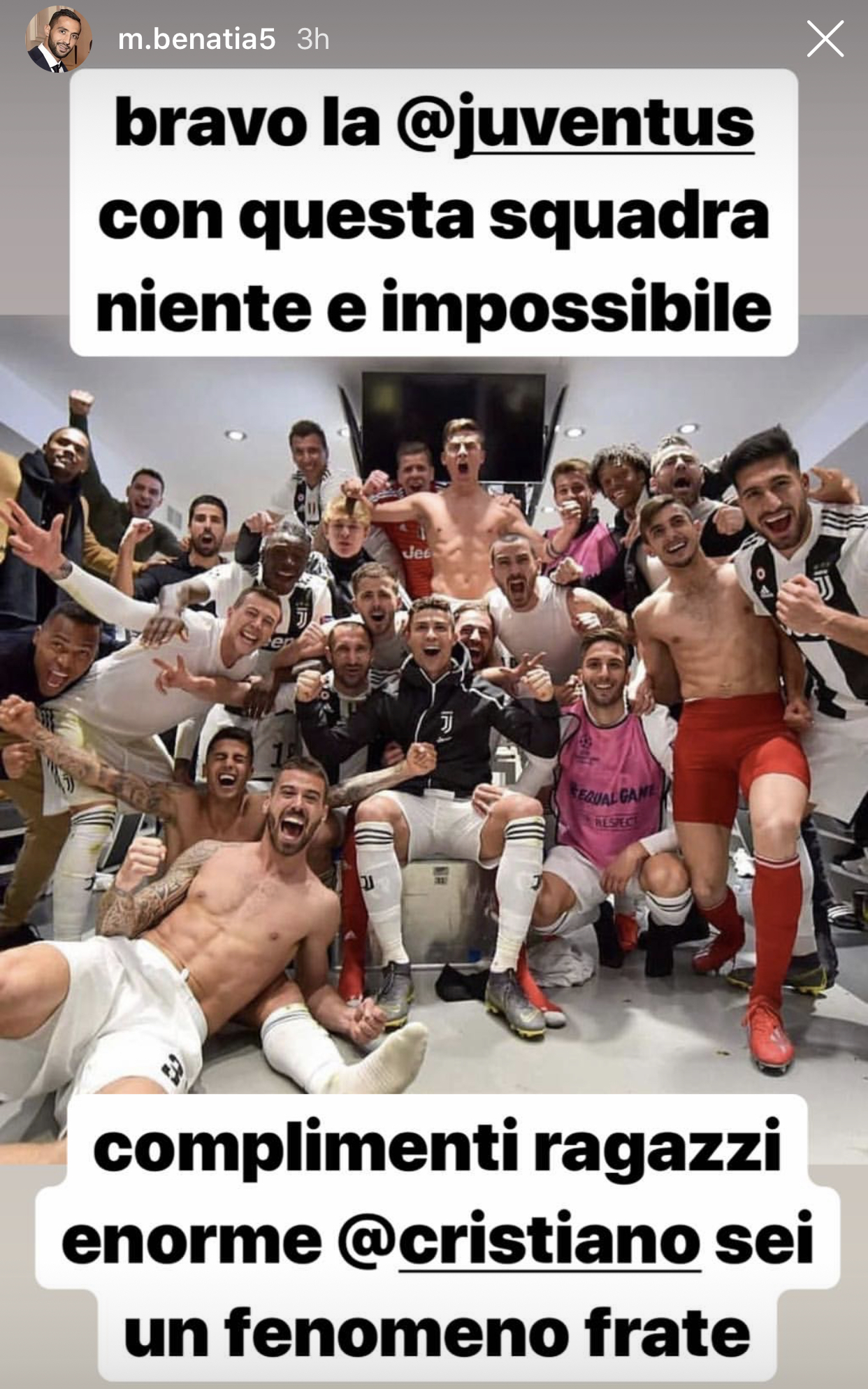 Medhi Benatia non ha voluto mancare i complimenti alla straordinaria impresa della Juventus che è riuscita ieri sera a rimontare due reti all’Atletico Madrid.