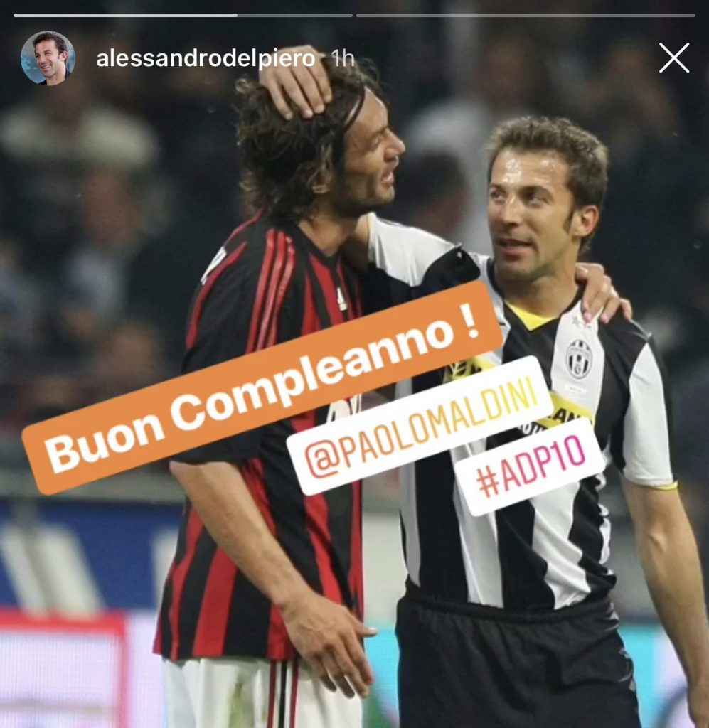 Alessandro Del Piero + stato uno dei tanti che nella giornata odierna ha voluto celebrare il compleanno di Paolo Maldini.