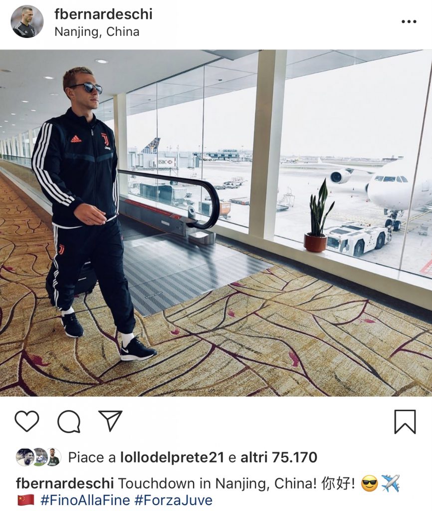 Il numero 33 difatti è stato l’artefice del momentaneo pareggio firmato da Higuain ed ha dimostrato di avere una condizione fisica al di sopra della media della formazione bianconera. Il mancino oggi ha postato su Instagram una foto del suo sbarco in Cina, all’aeroporto di Nanjing, che ha commentato: “Touchdown in Nanjing, China!”.
