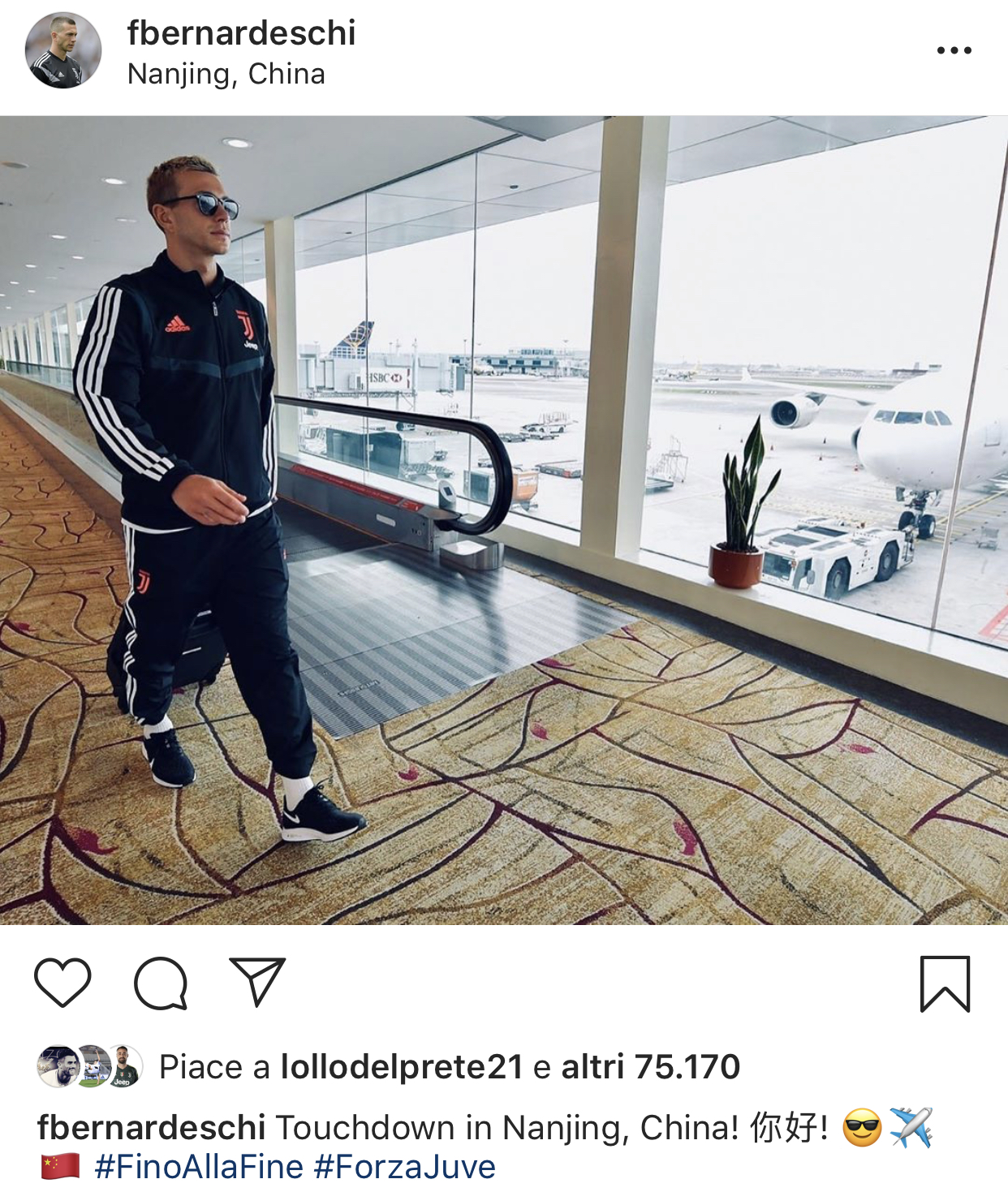 Il numero 33 difatti è stato l’artefice del momentaneo pareggio firmato da Higuain ed ha dimostrato di avere una condizione fisica al di sopra della media della formazione bianconera. Il mancino oggi ha postato su Instagram una foto del suo sbarco in Cina, all’aeroporto di Nanjing, che ha commentato: “Touchdown in Nanjing, China!”.