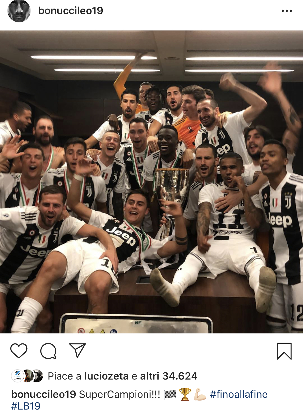 Leonardo Bonucci ha da poco postato sul suo profilo ufficiale di Instagram una foto che ritrae tutto il gruppo bianconero intento a festeggiare a festeggiare