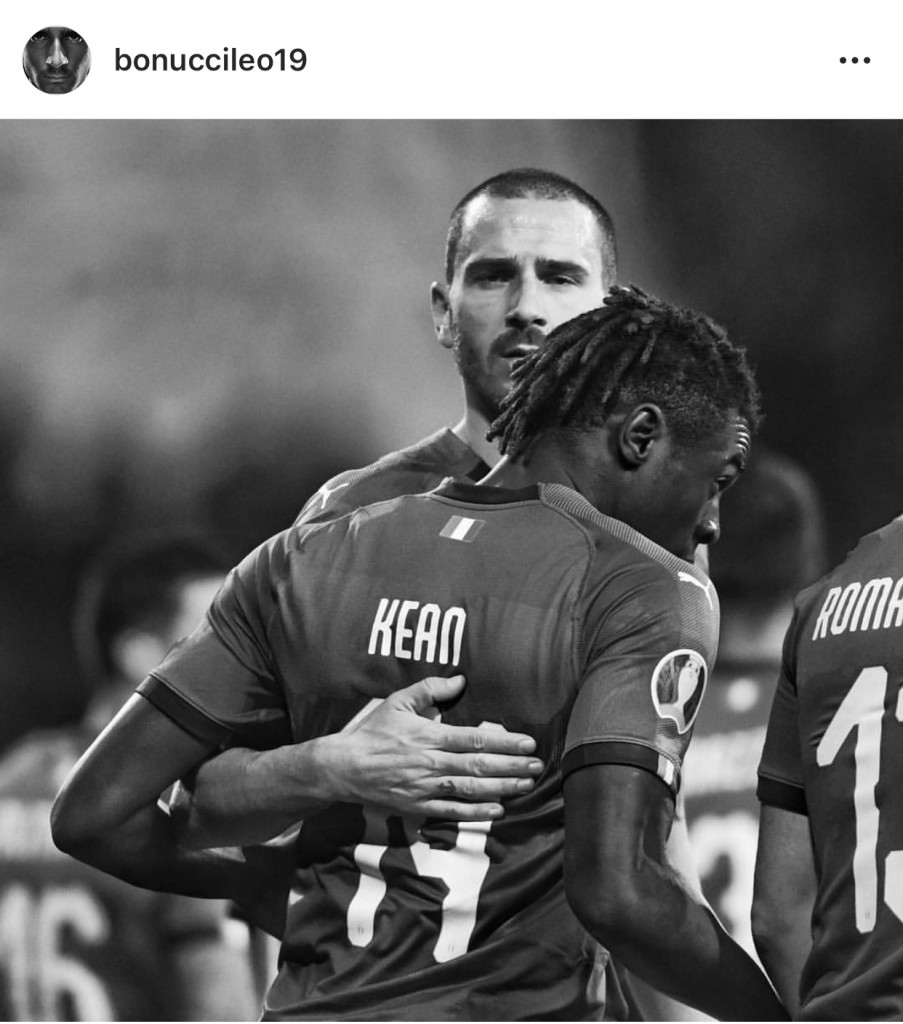 Leonardo Bonucci ha postato pochi minuti fa una foto che lo ritrae insieme a Moise Kean, nel tentativo di chiudere definitivamente le discussioni aperte dopo il suo post pubblicato ieri dopo la sfida vinta contro il Cagliari.