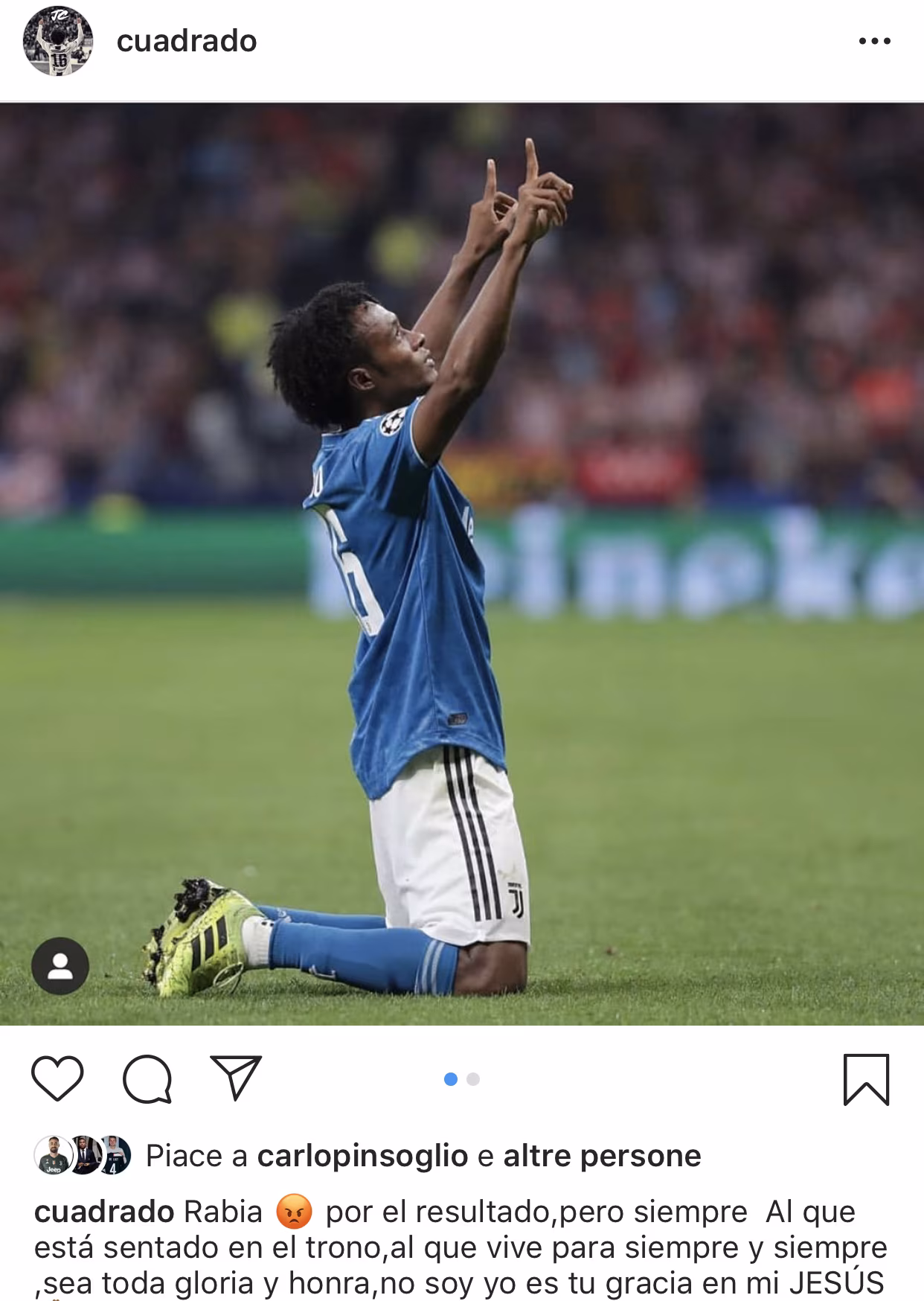 Juan Cuadrado, autore del grandissimo gol che ha sbloccato il match disputato questa sera al Wanda Metropolitano ha voluto celebrare la sua rete con un post su Instagram.