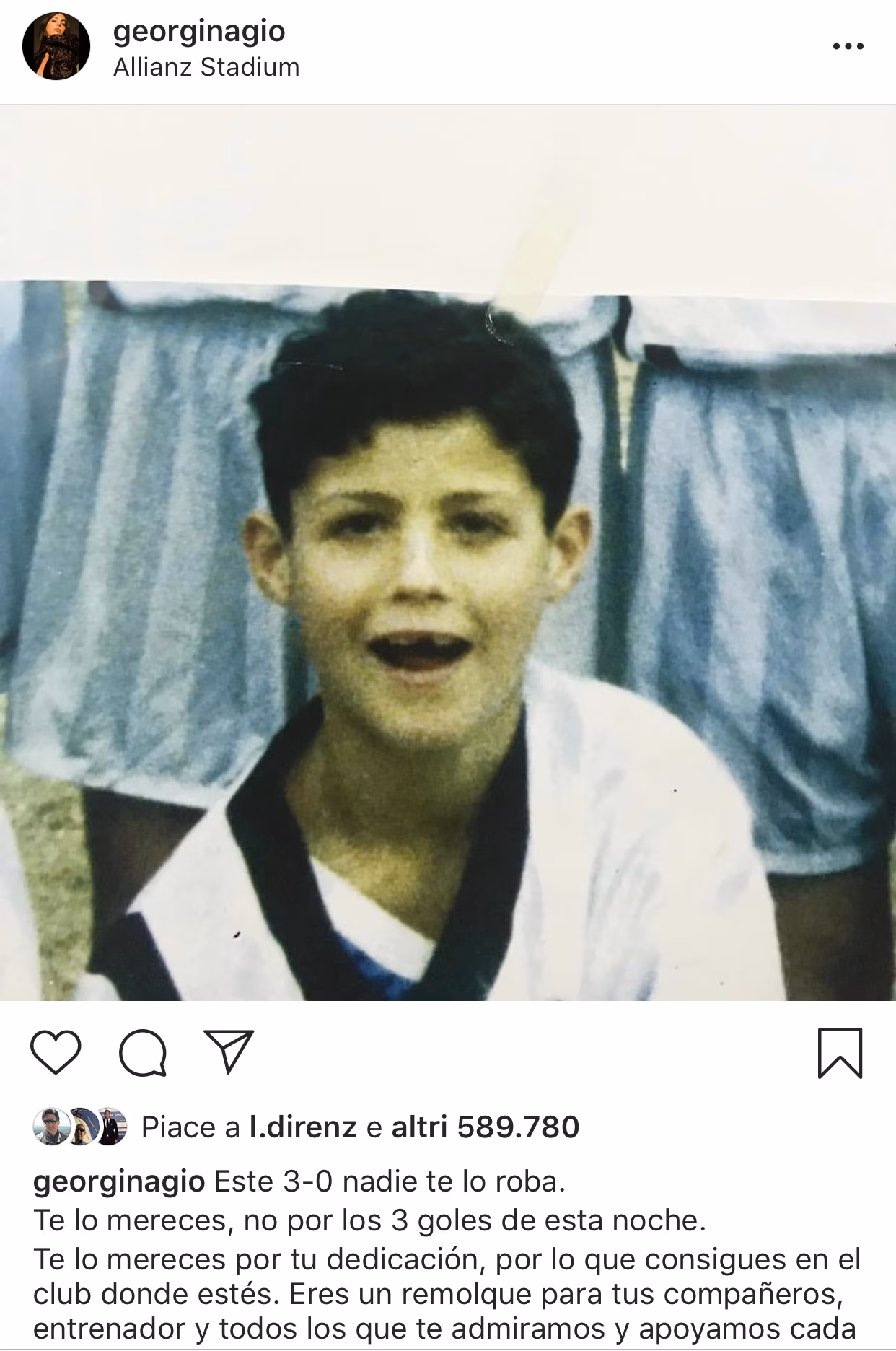 Georgina Rodriguez ha pubblicato su Instagram una foto che ritrae il suo fidanzato Cristiano Ronaldo da bambino, commentandolo con una dedica molto toccante.