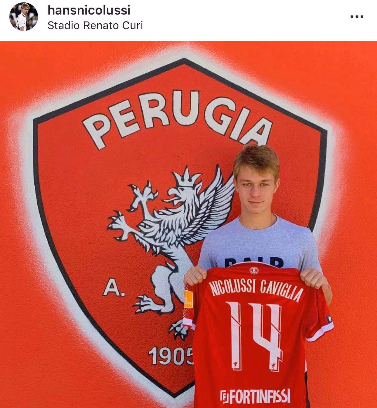 Il giovane centrocampista Hans Nicolussi Caviglia ha postato questa sera sul proprio profilo Instagram una foto della sua presentazione nella squadra dove trascorrerà questa stagione in prestito, il Perugia.