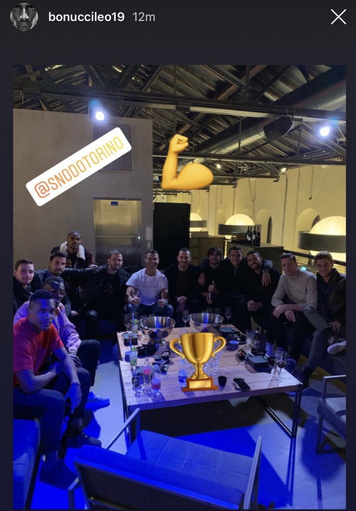 Leonardo Bonucci ha postato pochi minuti fa una foto che ritrae molti dei giocatori bianconeri intenti a festeggiare al noto ristorante “Snodo” di Torino